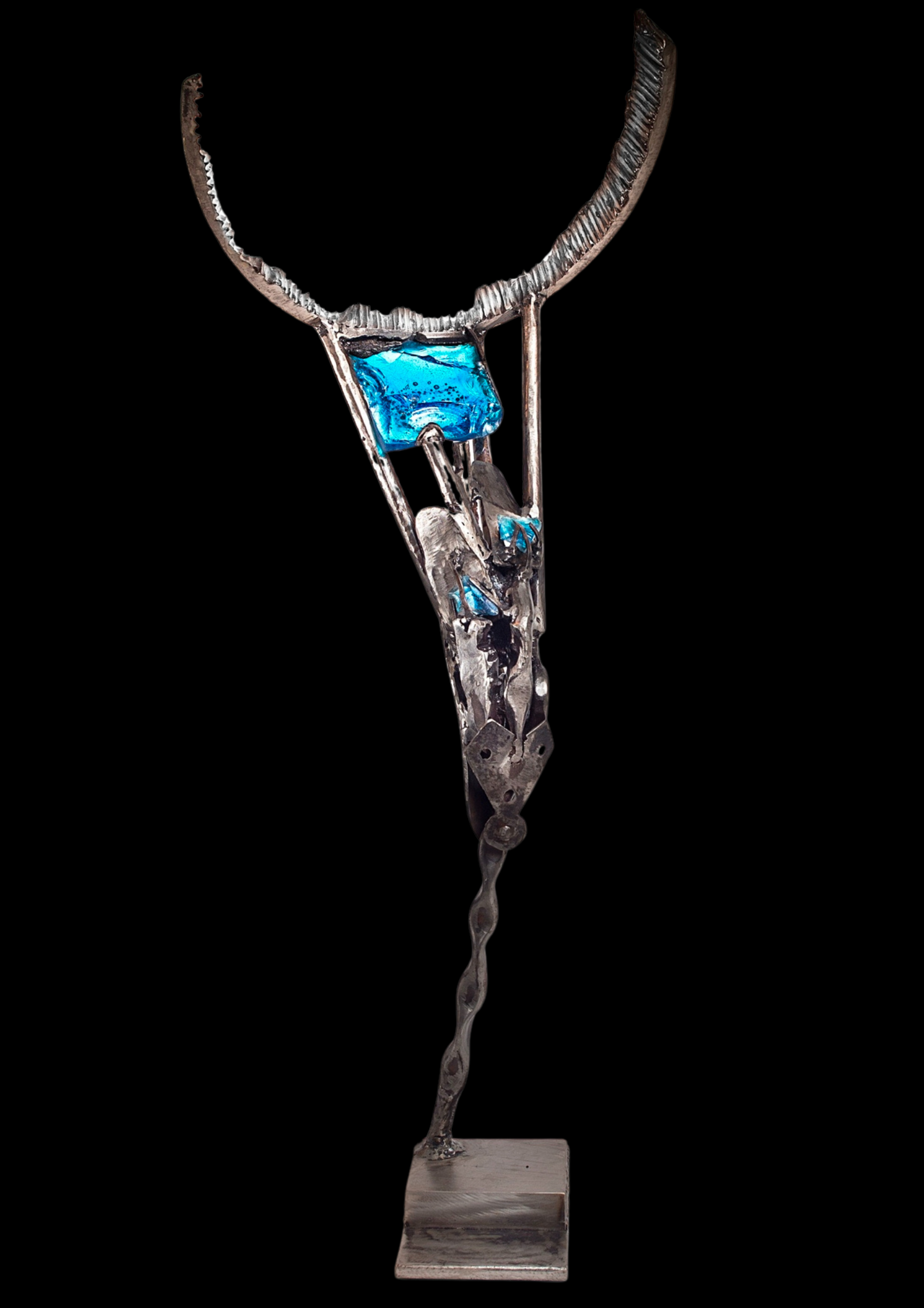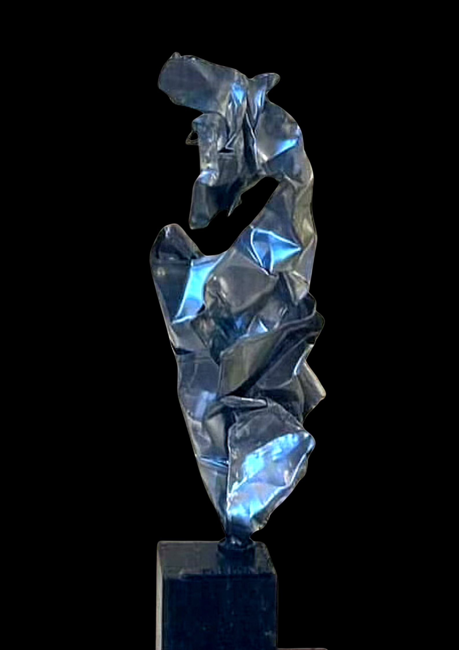 Chaque sculpture que je crée est une trace, une empreinte, le fruit d’un dialogue intime entre la matière et le mouvement intérieur. Je ne cherche pas à imposer une forme, mais à révéler ce qui sommeille déjà dans le métal ou le verre, à écouter le murmure de la matière plutôt qu’à la contraindre. Mon travail ne s’inscrit pas dans la répétition ou la série : chaque pièce est unique, façonnée dans un état de présence, en réponse à une sensation, un choc, une image, un éclat transmis.